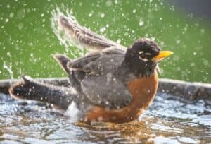 Remember to clean out and fill your bird baths regularly, too. Birdbaths provide your birds with a place to get a drink or a good bath, and provide you with lots of entertainment, as you watch them playing in the water. Birdbaths are also a breeding ground for mosquitoes, so emptying them, cleaning them out, and refilling them every day is a good idea not just to help keep birds healthy, but also to keep mosquito eggs from hatching.