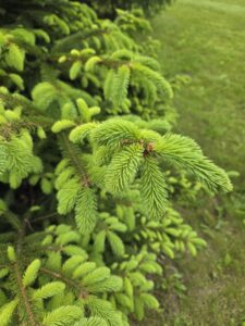 - You can pinch back evergreens once they have put out new growth. Pinching the new “candles” back by half will encourage them to bush out. But don’t cut into old wood, as most evergreens won’t produce new shoots from old growth.