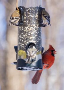 If you don’t feed your birds year-round, from now to next spring is the best time to do so. During the warmer months, the biggest source of food for most birds is insects. As it gets cold, and insects aren’t available, birds turn to vegetation for their food. But they need to eat a lot more to get the same amount of protein, and they need at least as much protein to help them get through the cold days and nights.