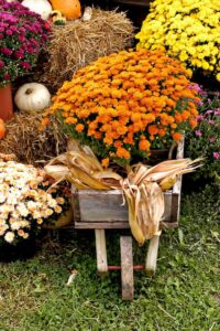 It’s mum time! We still have beautiful mums available at The Garden Mill, but they’re going fast (probably because they are so big and beautiful!), so don’t wait too long if you want some. If you are hoping to have your mums come back next year, there are a few things you should do. First, make sure you buy locally grown garden mums (different from florist mums, which will not return in our cold climate), and get them planted as early as possible so that the roots can get established before the ground freezes. Give them a good layer of mulch and keep them well watered, then when the ground is frozen, cover the roots and crown of the plant with about six inches of mulch.