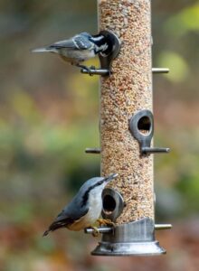 help them with their journey. Migrating birds spend a lot of energy looking for things to eat in the wild, and the extra energy they get from your food offerings can make the difference in their ability to make it all the way to their winter home. - Also keep your birdbaths out, cleaned, and filled until we start to get freezing temperatures. You can leave your birdbath out all winter long if it is freeze tolerant or you use a de-icer.